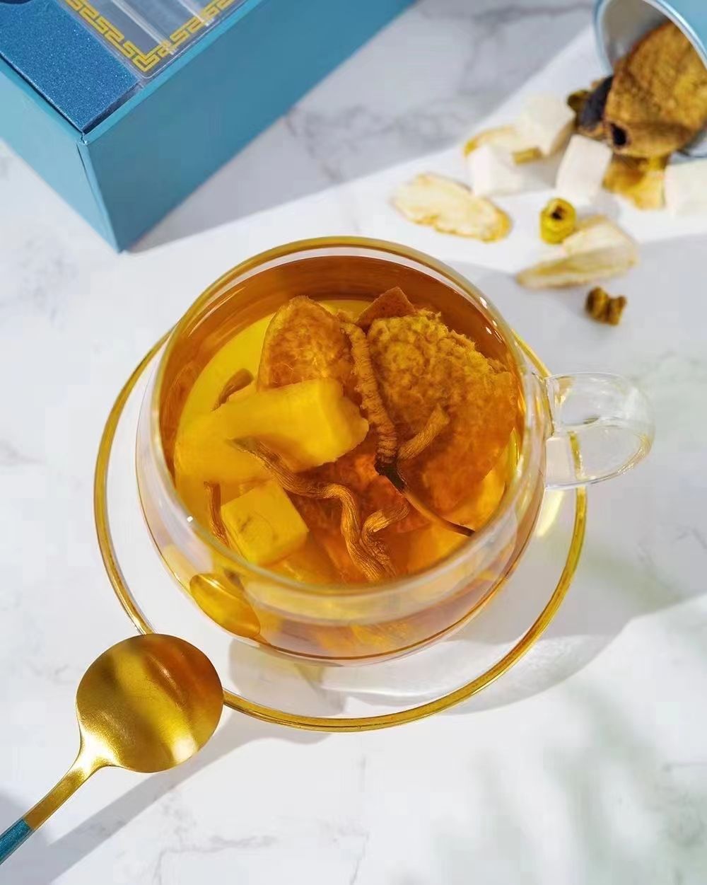 「配方」 冬蟲(chóng)夏草10克,炮天雄10克,肉蓯蓉 10克,羊肉100克,生姜2片。
