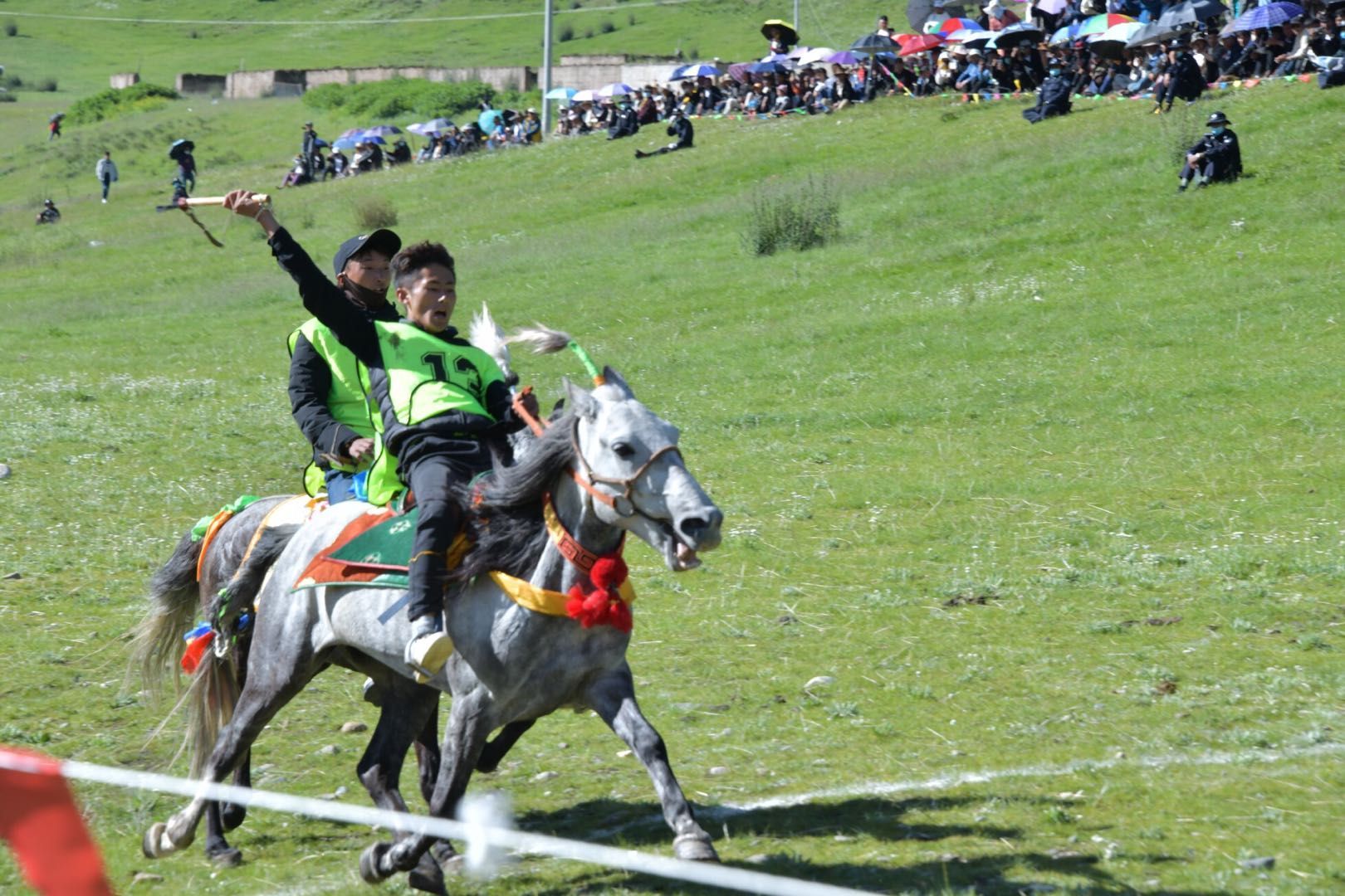 27日上午,在比如縣茶曲鄉(xiāng)措姆頂舉行場(chǎng)面熱烈、令人激情振奮的“走馬預(yù)賽”活動(dòng),只見(jiàn)賽馬場(chǎng)上,娜秀男兒身著節(jié)日盛裝,腳跨高大駿馬,在草原上奔馳。經(jīng)過(guò)激烈的角逐,共有24名騎手進(jìn)入7月30日的走馬決賽。